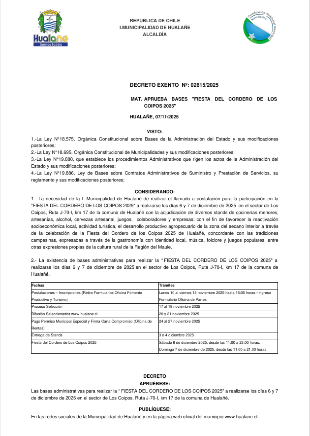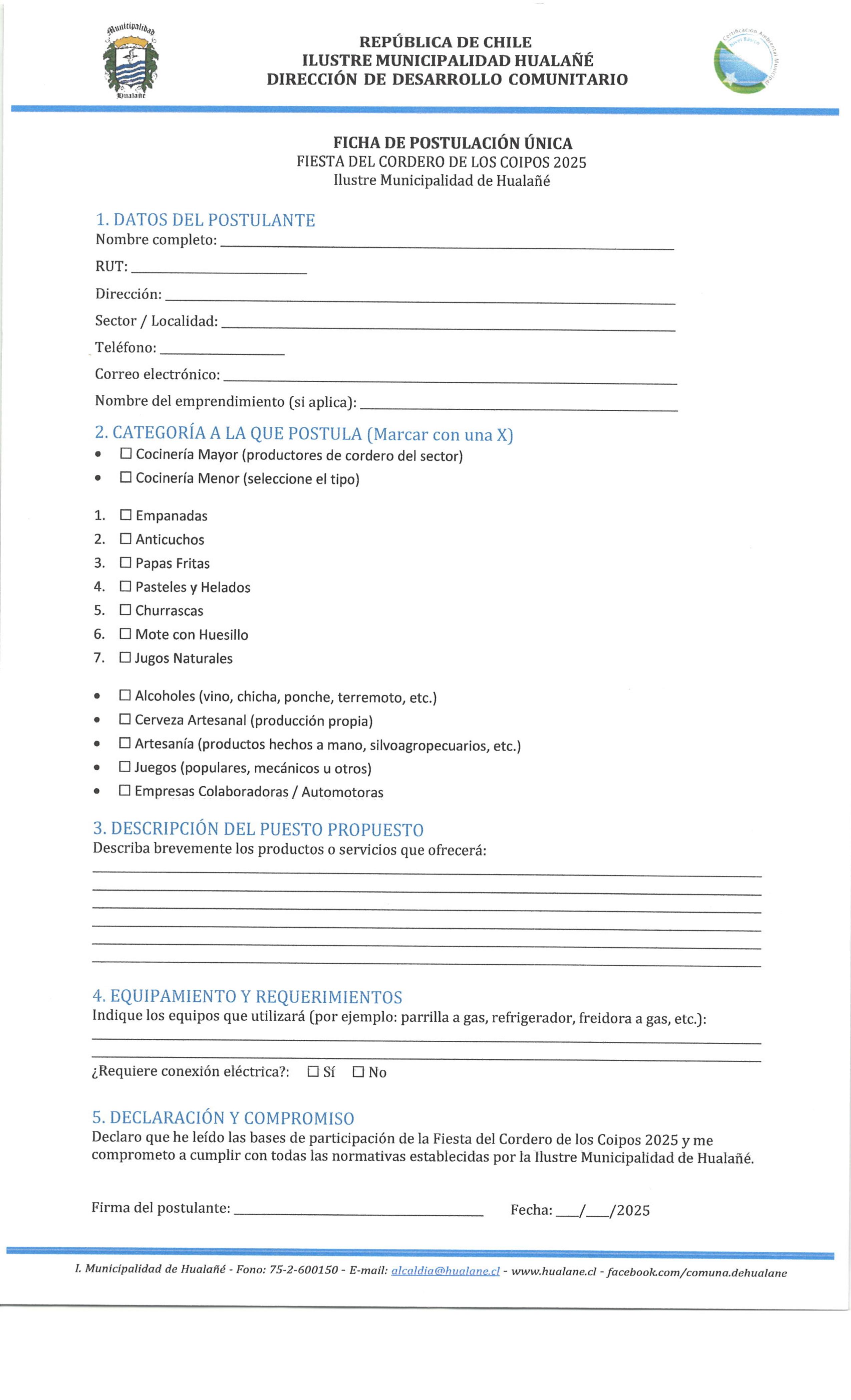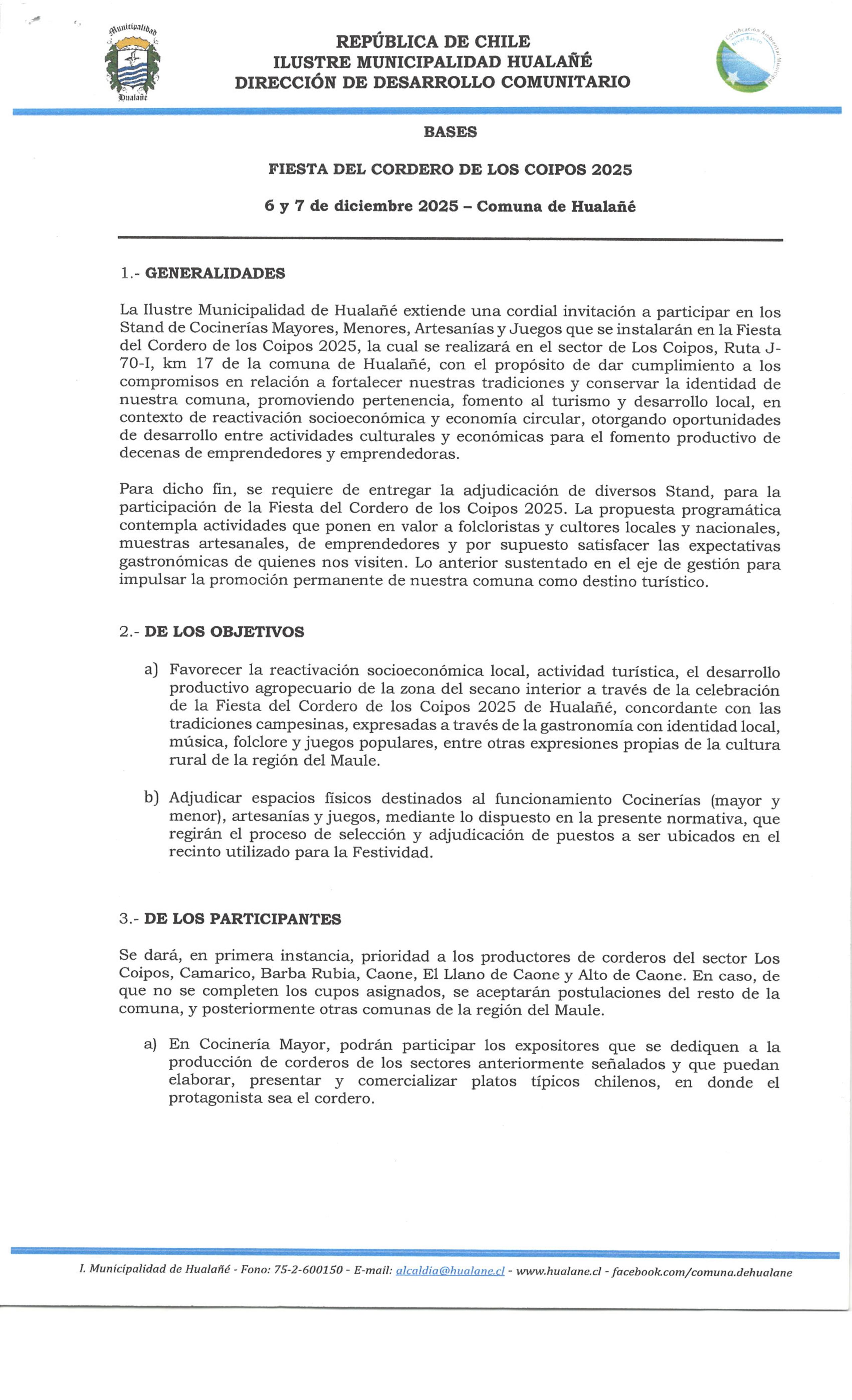 Se realiza el llamado a postulación para la participación en la «FIESTA DEL CORDERO DE LOS COIPOS 2025″ a realizarse los días 6 y 7 de diciembre de 2025.